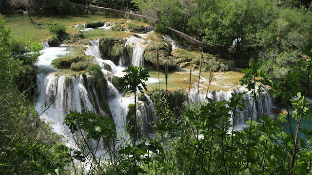 克爾卡國家公園入場費 KN100,由入口可以坐免費巴士到大瀑布群。公園內一共有十七條瀑布,景色可跟十六湖國家公園(Plitvicka Jezera) 媲美。我上網搵資料時,睇見克爾卡國家公園允許遊客係大瀑布前遊水,唔游水浸下腳都可以。不過我地當日去到,天氣比較涼,所以冇人落水。